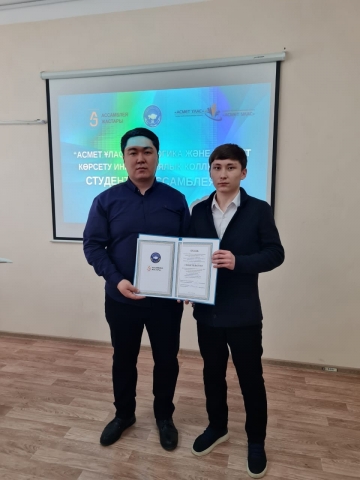 “Асмет Ұлас” жоғары педагогикалық колледжіне Студенттік Ассамблея Куәлігі табысталды