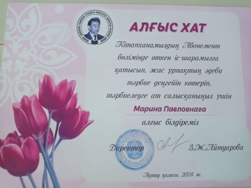Алғыс хатпен марапатталды