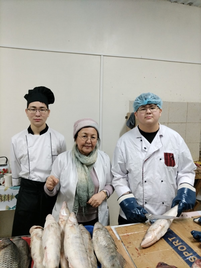 20.02.2024ж күні ТПП-09/22 қазақ тобының студенттері және оқытушы Бокыбаева Гуль Сарсеновнаның жетекшілігімен КМ 5 модулі бойынша «Балықтарды өңдеудің күрделі процессін орындау және жартылай өнімдер дайындау» модулі бойынша жеке кәсіпкер Гимранова А. барып, балықтардың ассортиментімен өңдеу жолдарын көрді. Студенттер сибас, дорада, минтай, скумбрия, салака, амур, судак, кефаль, сазан, сёмга, форель, камбала,пангасиус,телапия,сом және тұздалған балықтар ассортментімен танысты. Өткен тақырыптар бойынша студенттердің теорияда алған білім деңгейін көтеріп,балықтарды қабыршақты қабыршақсыз топтарына бөлді. Жеке кәсіпкер Гимранова А. алғысымыз шексіз.