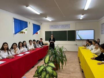 01.11.2023ж күні Басшының оқу-өңдірістік ісі жөніндегі орынбасары Карибаева Манзура Алтынбековна 2ТПП-9/22 тобымен, тақырыбы «Шағын бизнесті дамыту және бизнес...