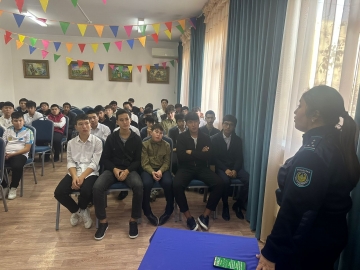 Бүгін Ақтау қаласы ювеналды полиция инспекторы, полиция капитаны Темирова Динара Армановна және ювеналды полиция инспекторы, полиция лейтенаты Маметов Бауыржан Жұмабайұлының қатысуымен колледж студенттеріне құқық бұзушылықтың алдын алу бойынша жиналыс өтті. Жиналыста жастар арасындағы құқықбұзушылықтын алдын алу мақсатында түсіндірме жұмыстары жүргізілді.