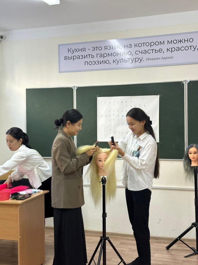 31.10.2023 ж. "Шаштараз өнері" мамандығының арнайы пән оқытушысы Давлетова С.К. 3 курс ПМ 9/21 тобының студенттерімен "Постижер өрімі, өрімді орындау технологиясы" тақырыбында ашық сабақ өткізді.
