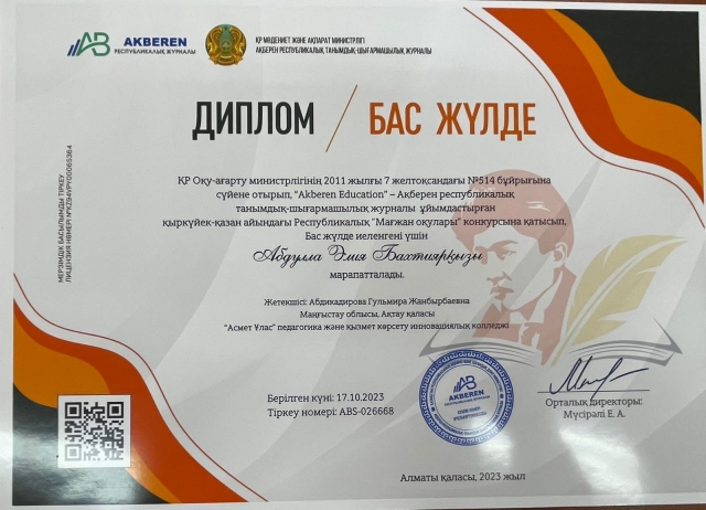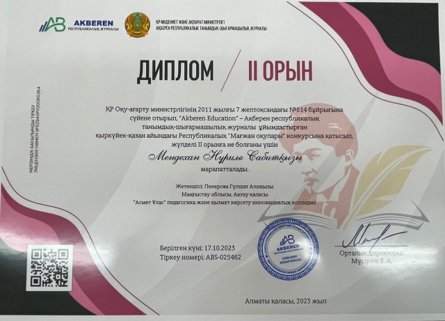 “Асмет Ұлас” педагогика және қызмет көрсету инновациялық колледжінде 16.10.2023 ж күні жалпы білім беру пәндерінен колледжішілік пәндік олимпиада өткізілді....