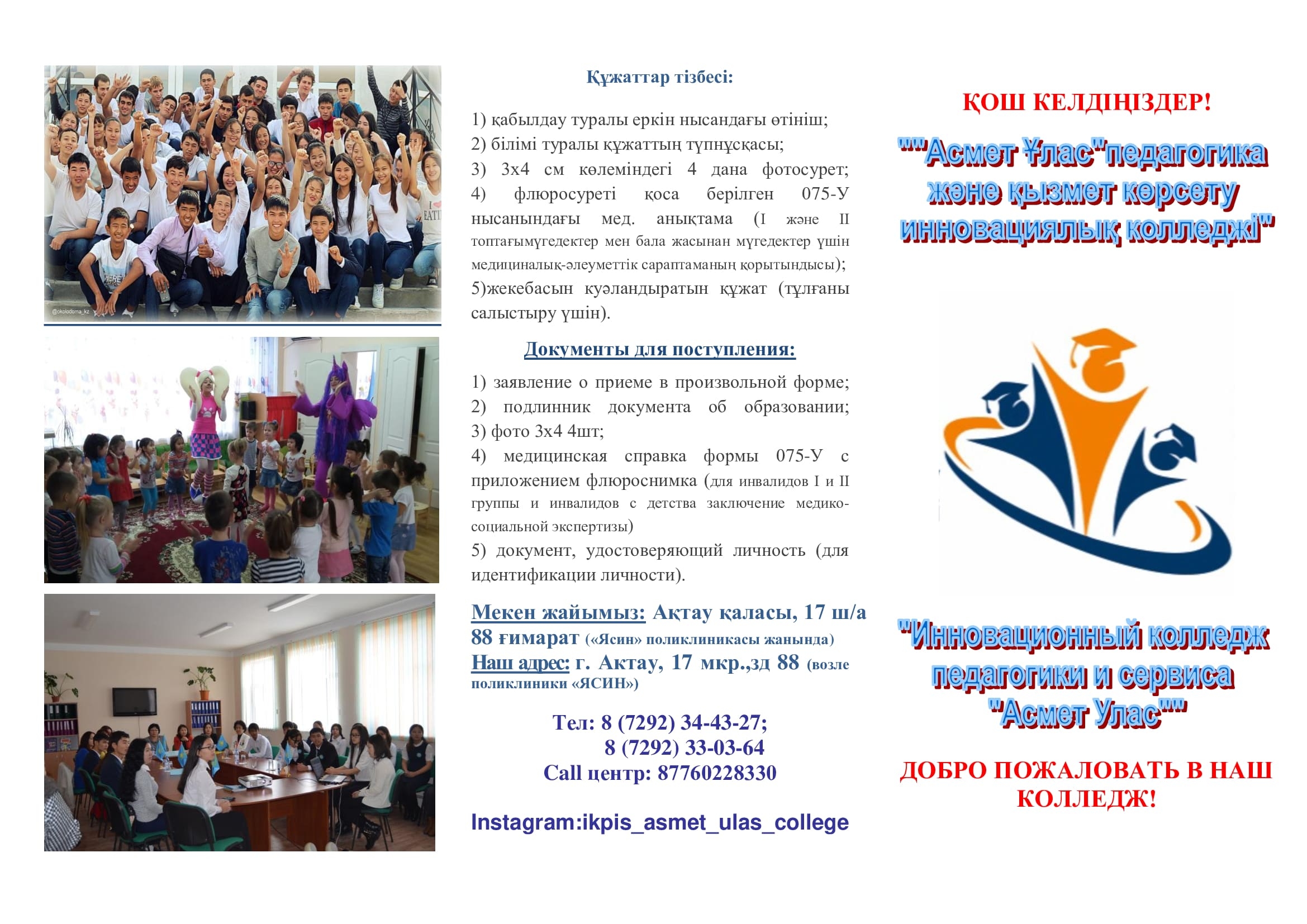 «Асмет Ұлас» жоғары педагогикалық колледжі мамандықтары бойынша ақпарат