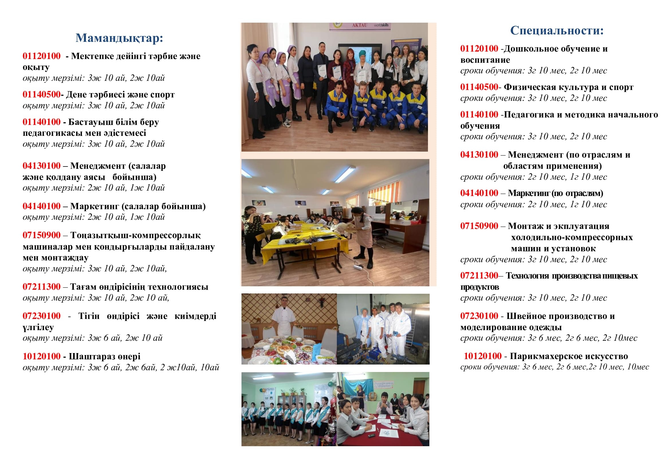 Бүгінгі күнде, колледж нарық сұранысына ие мамандықтар бойынша студенттерді дайындайды: